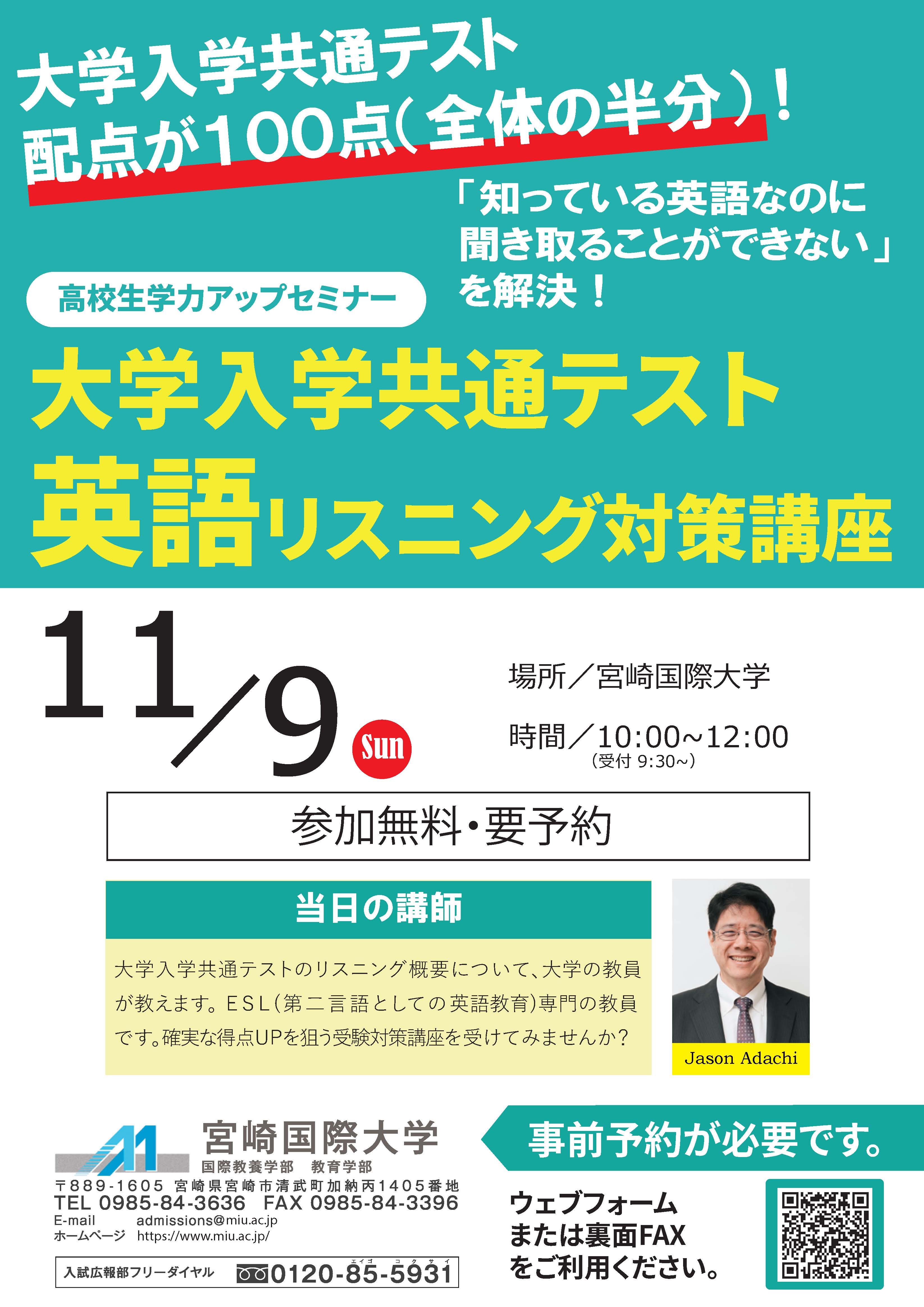 令和7年11月9日(日)に「大学入学共通テスト 英語リスニング対策講座」を開催します。