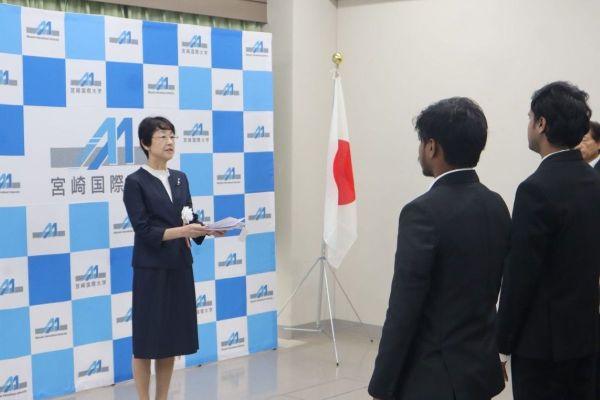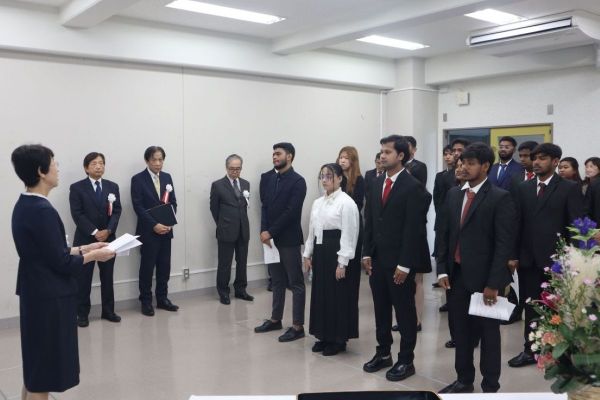令和7年10月1日(水)、令和7年度秋季入学式を挙行しました。今年度は18名の留学生が入学となりました。(入国時期の関係等で出席は16名で挙行)様々な国からの留学生を迎え、より一層グローバルとなった本学において、皆さんとともに学べることを嬉しく思います。