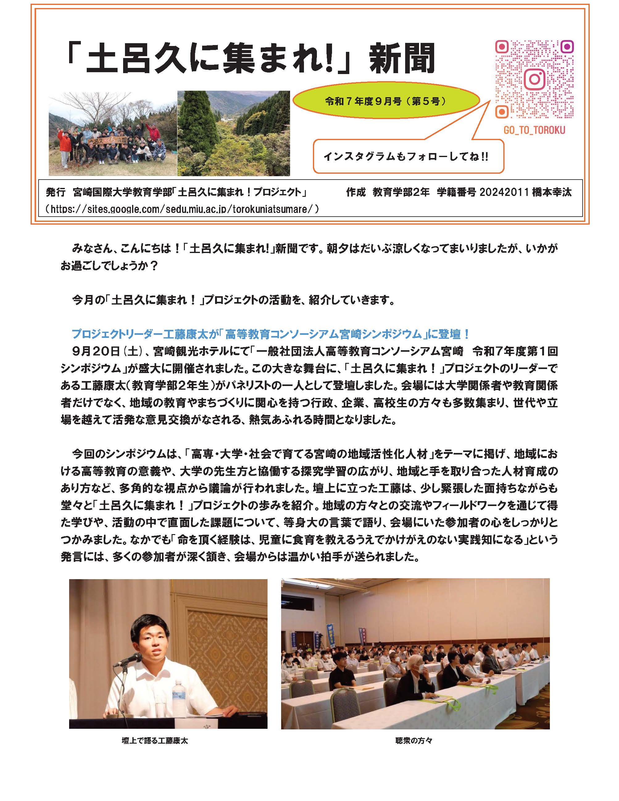橋本幸汰さん(教育学部2年)より「土呂久に集まれ!」新聞9月号が届きましたので、紹介させていただきます。