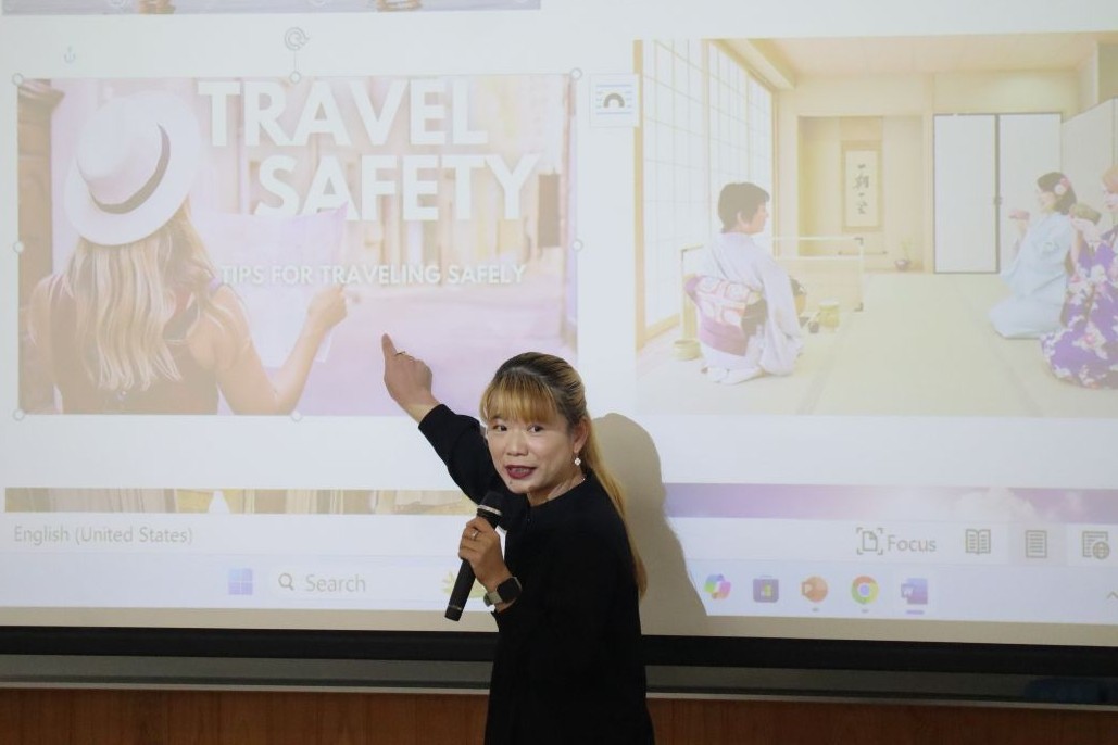 午前中は、国際教養学部のラウィーワン・プロイルンウルー先生による特別講義「Special-interest Tourism」の後、5つのグループに分かれてプレゼンテーションの練習を行いました。午後は、大学院生の向井萌依さんによる「リベラルアーツ」に関するモデルプレゼンテーションの後、プレゼンテーションを行う上で重要な点について皆で話し合い、今度は22班の小グループになって、在学生や教員のサポートの下、英文スピーチを作成し、声に出して読む練習をした後、各班ごとにプレゼンテーションを行い、評価、振り返りとクイズを実施しました。