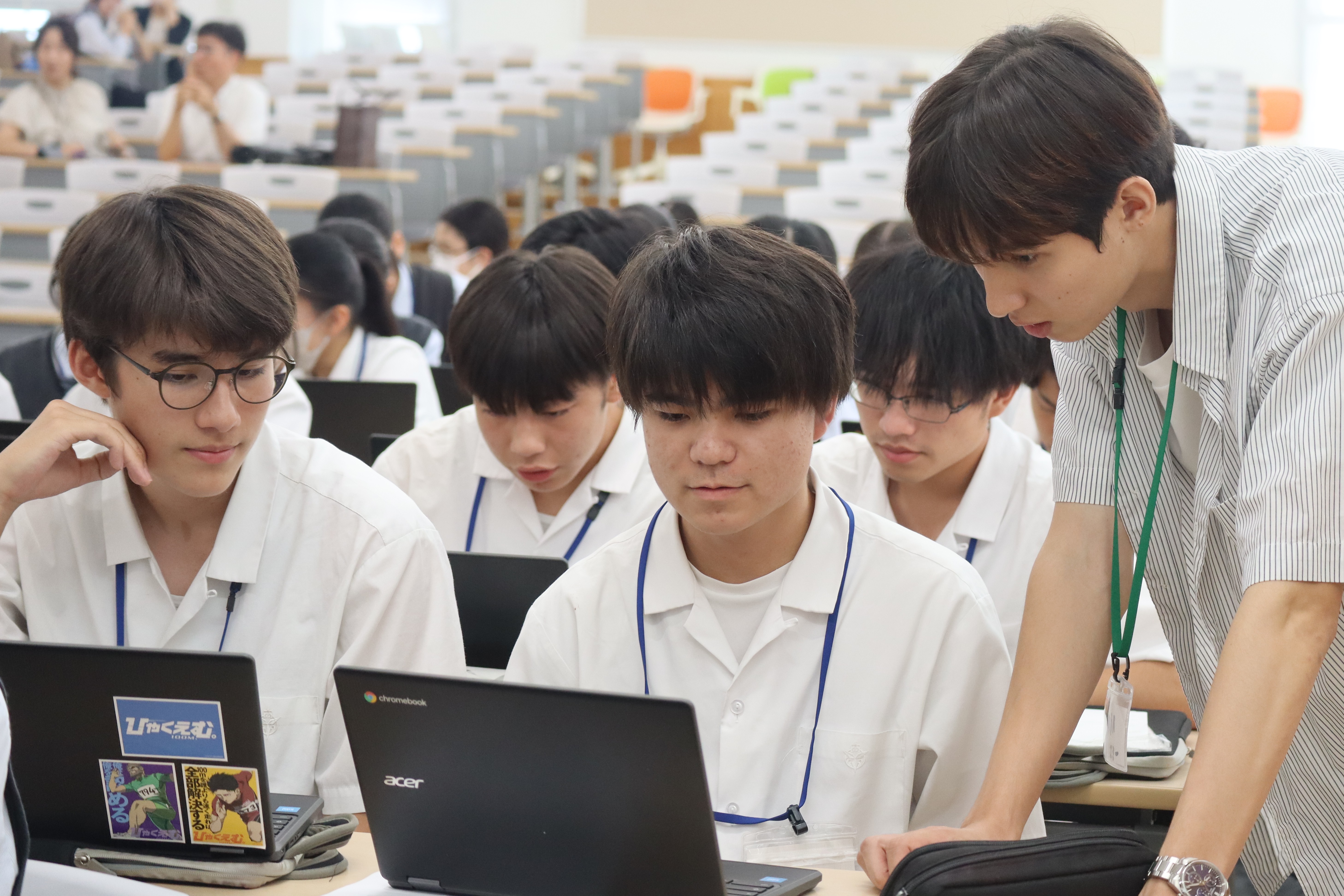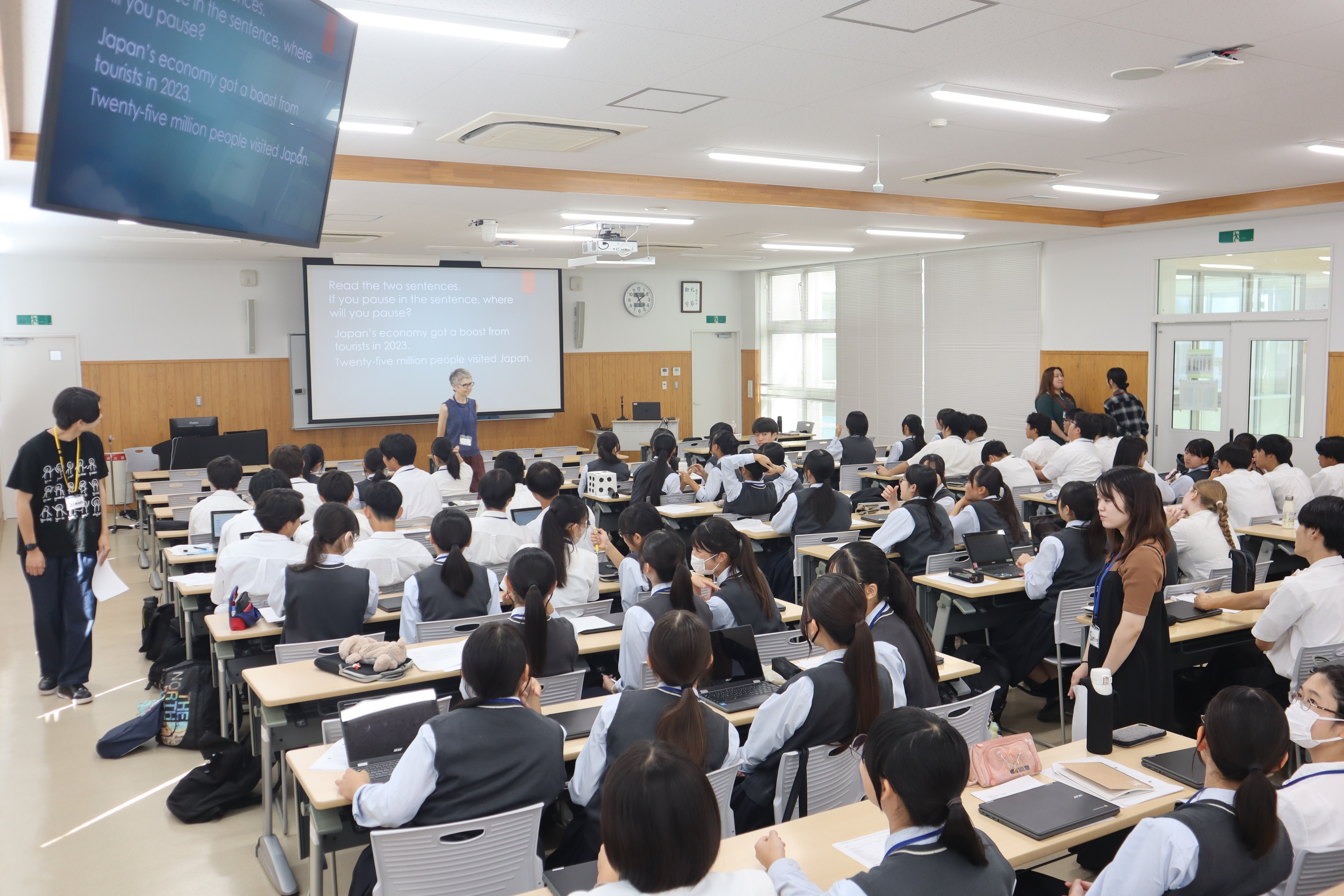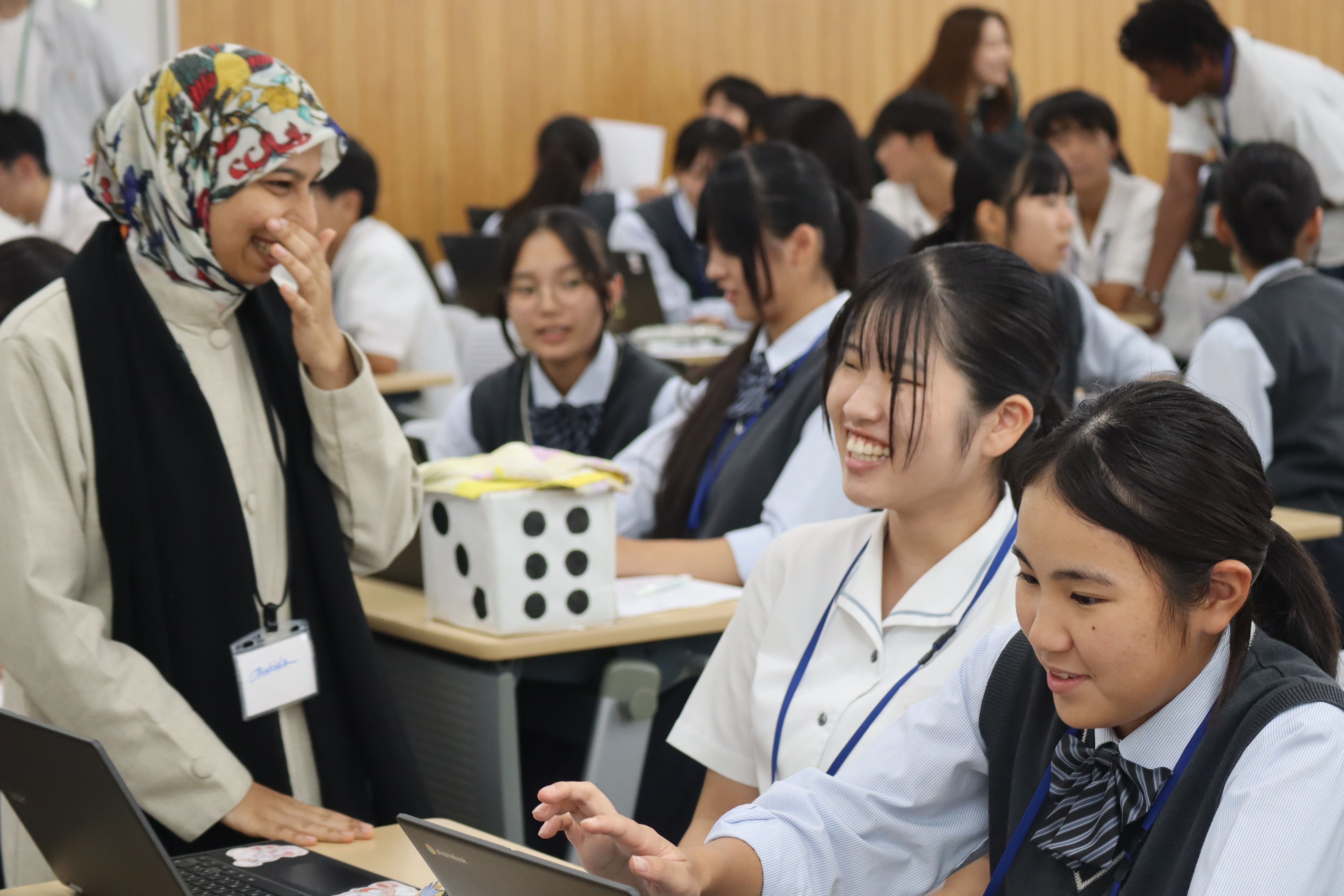 令和7年10月16日(木)、宮崎県立宮崎南高校2年生77名が来学し、国際交流と異文化理解をテーマに「宮崎南高校English Day」を行いました。午前中から夕方まで、本学にて在学生や教員と英語で交流しました。