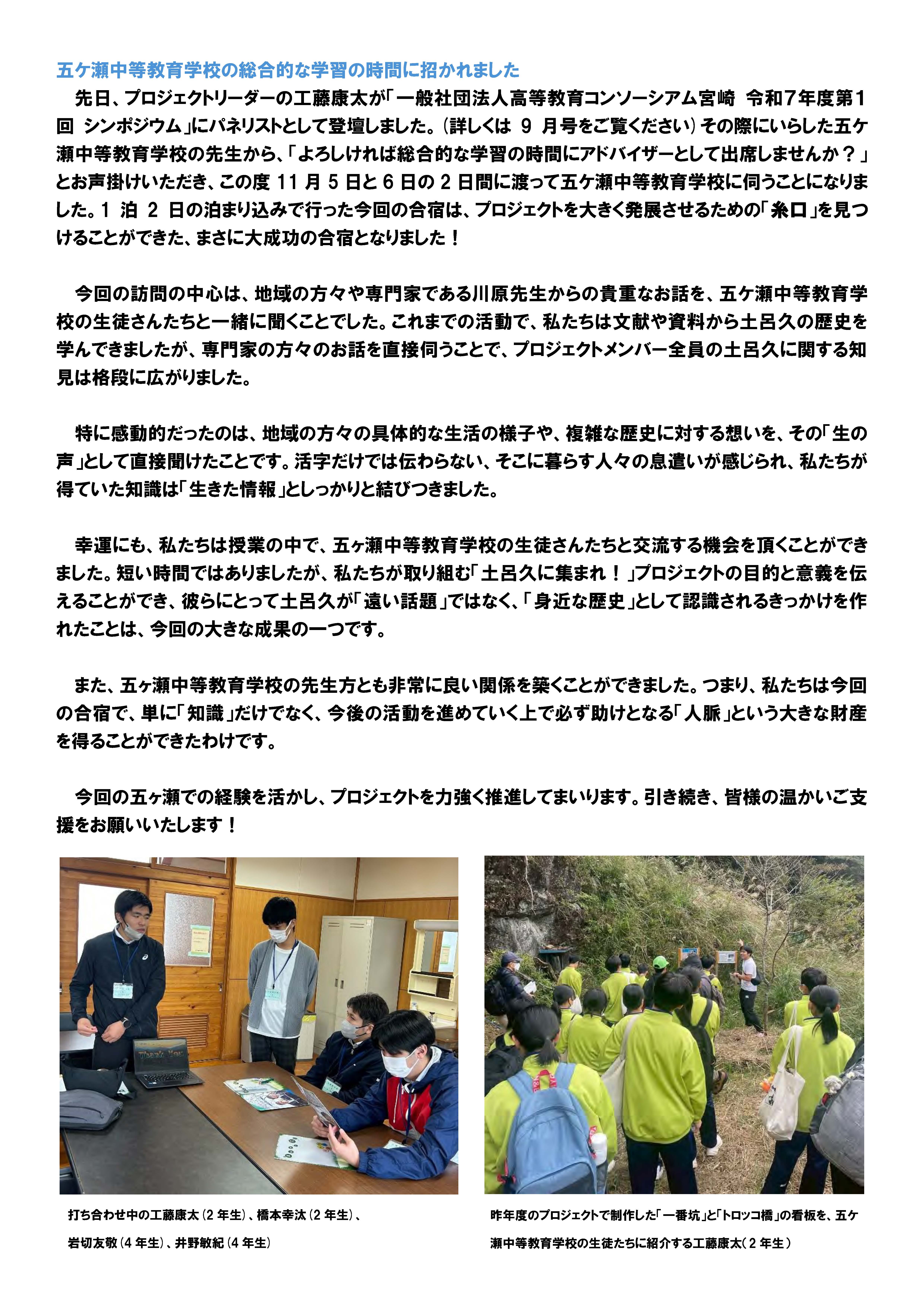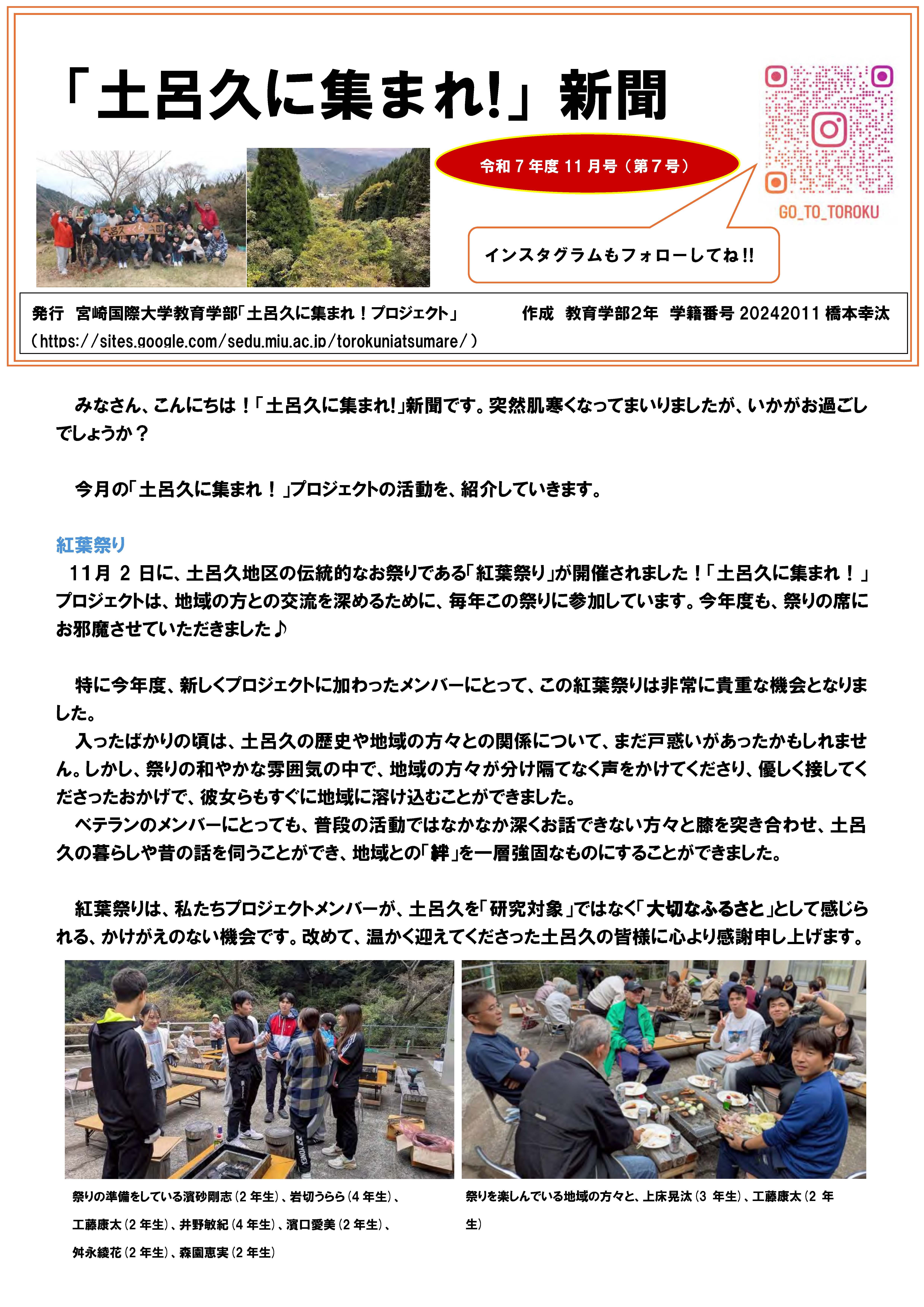 橋本幸汰さん(教育学部2年)より「土呂久に集まれ!」新聞11月号が届きましたので、紹介させていただきます。