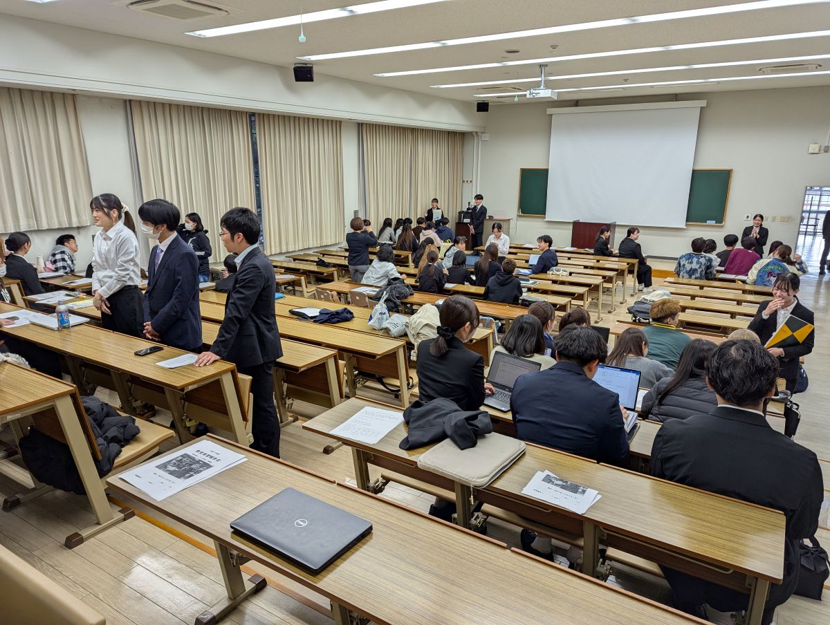 発表では、実際の授業づくりの工夫や子どもとの関わり方、失敗から学んだことなど、現場で得たリアルな経験が語られました。後輩の学生たちは真剣に耳を傾け、メモを取りながら多くの質問を交わしていました。教育実習は、教員免許取得のための必修科目であると同時に、教育学部の学生にとって「教師になる自覚」を深める大切な機会です。実習を終えた学生たちは、子どもたちとの出会いの中で教育の奥深さと責任を実感し、完全燃焼の表情で後輩たちに学びを共有していました。